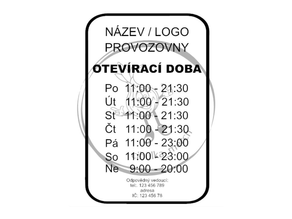 Samolepka označení provozovny / otvírací doba